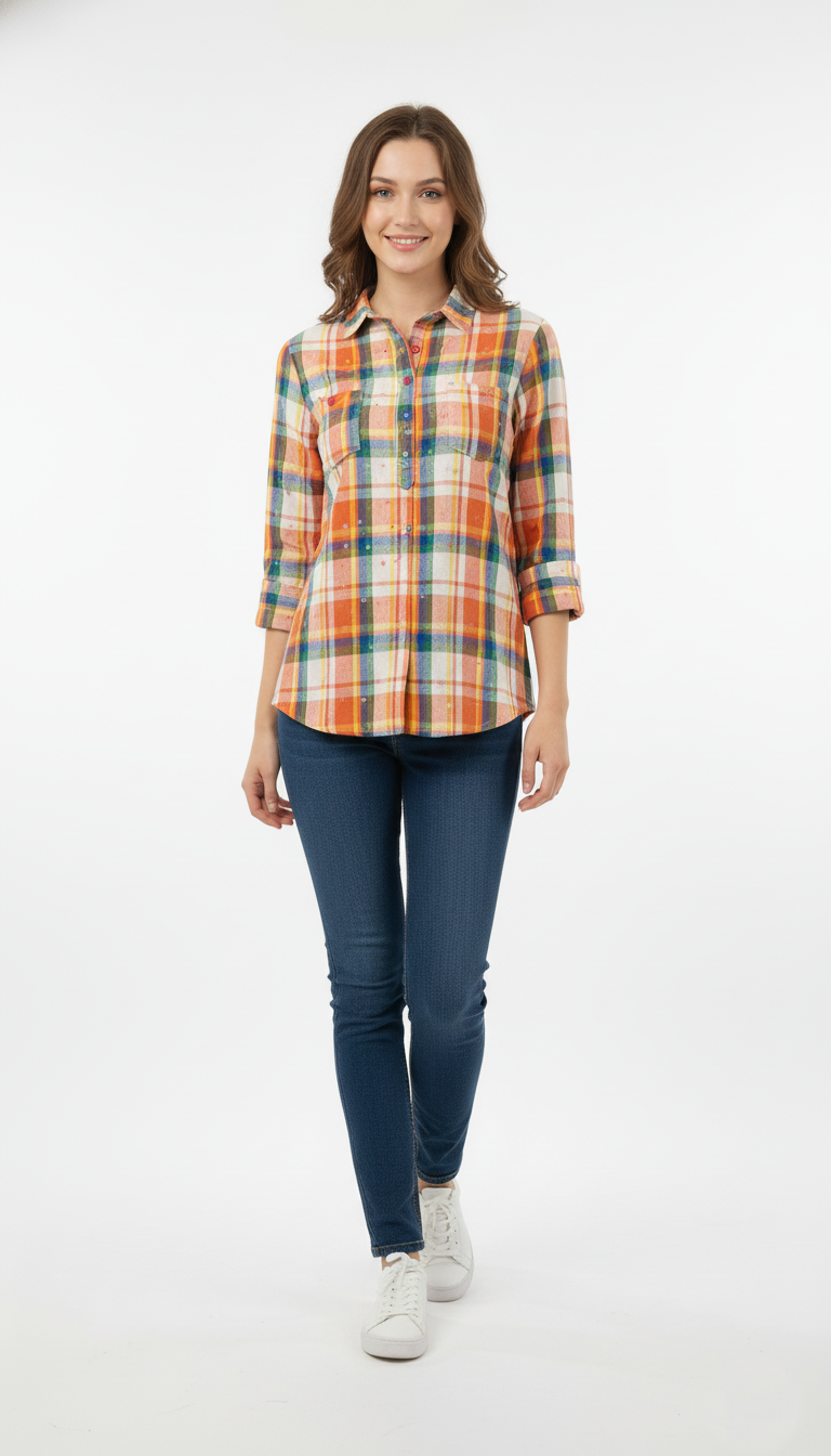 SWEET MUSTARD Women Checked Double Pocket Shirt  our long-sleeve shirt is made from 100% cotton for all-day...