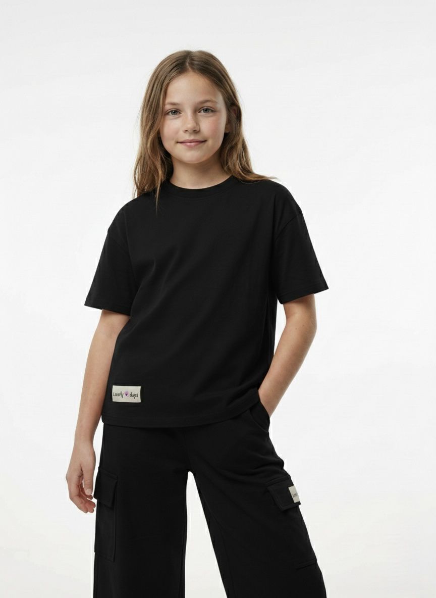 Elevate her everyday style with our Girls' Relaxed Fit Black T-Shirt & Cargo Pants Set. Designed for ultimate comfort and versatile wear, this two-piece outfit is perfect for school, play, and everything in between.