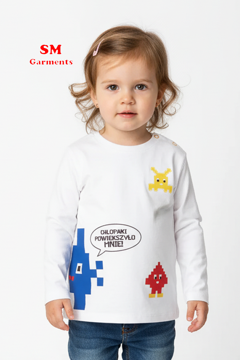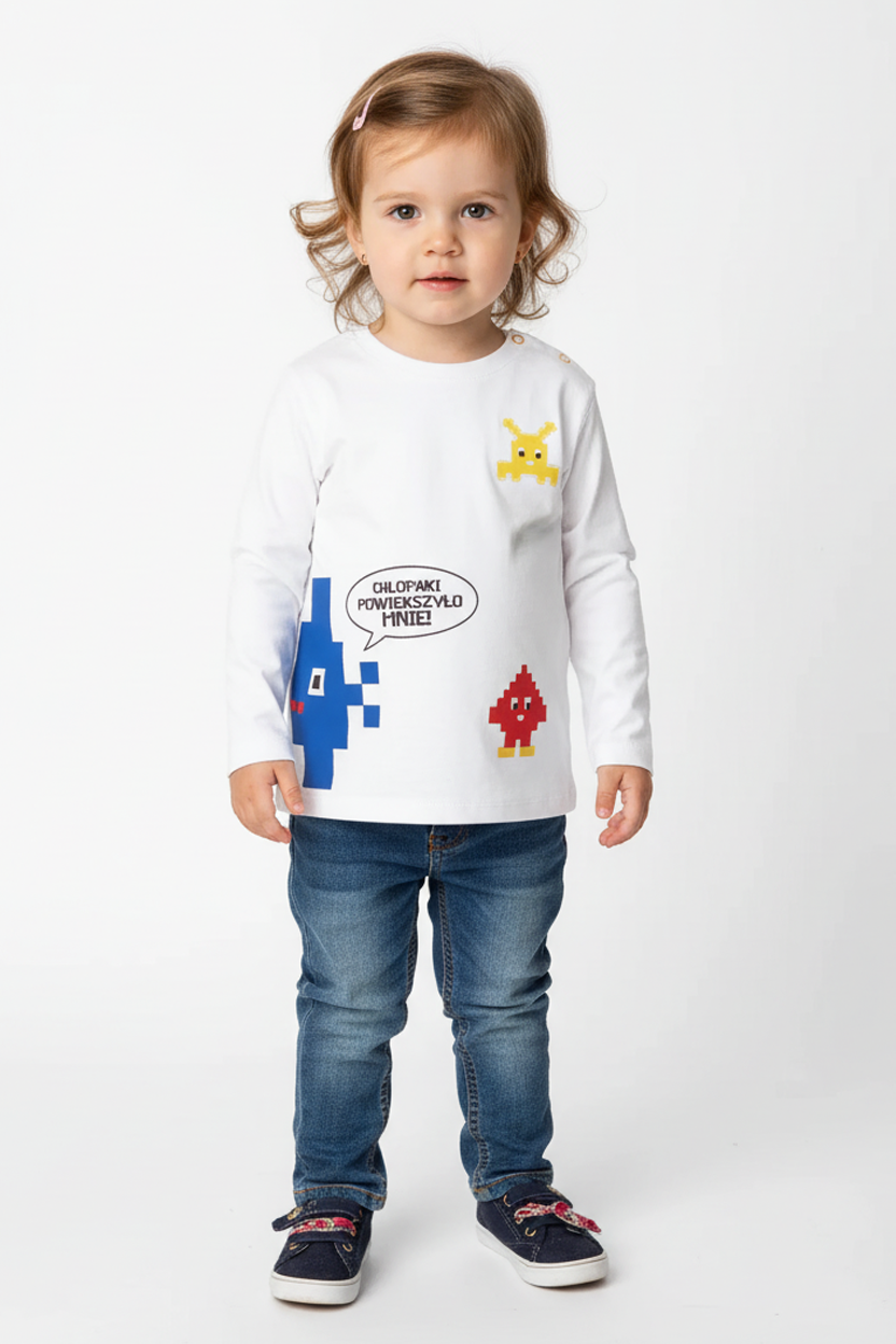 The ingenious long-sleeved blouse is a hit for a tiny lover of cuddling! The delightful model will be a great addition to everyday, comfortable styling, providing the baby with a wonderful look and full comfort while wearing. You can use it as an independent top of an outfit or a base for a warm sweatshirt or sweater.