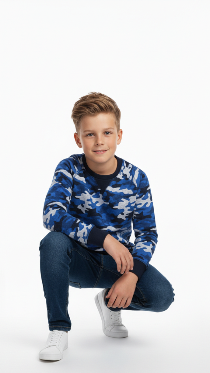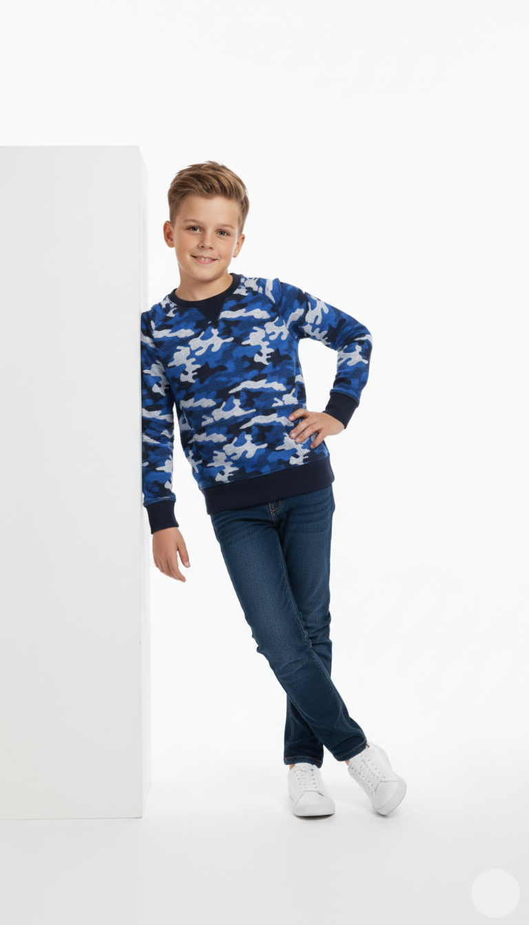 Printed sweatshirts with a round neck and long sleeves. The collar, sleeves and waist feature elasticated ribbed trims.