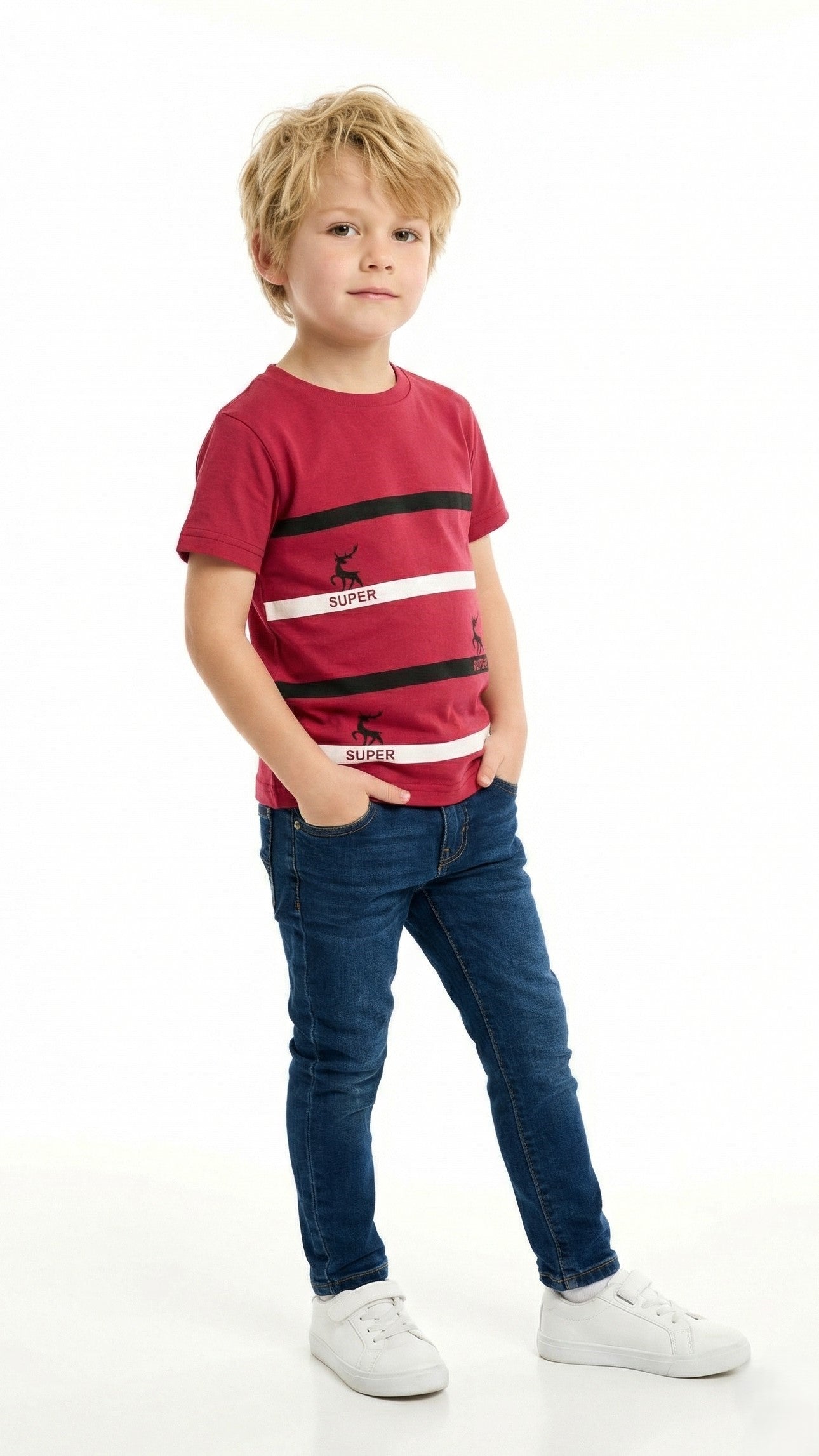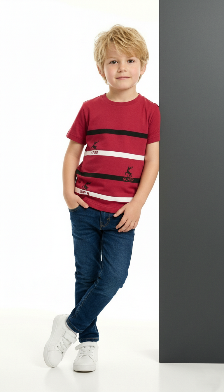 If your little champ loves fashion, then this T-shirt is perfect for him. The T-shirt features a logo print and has a colourblock pattern