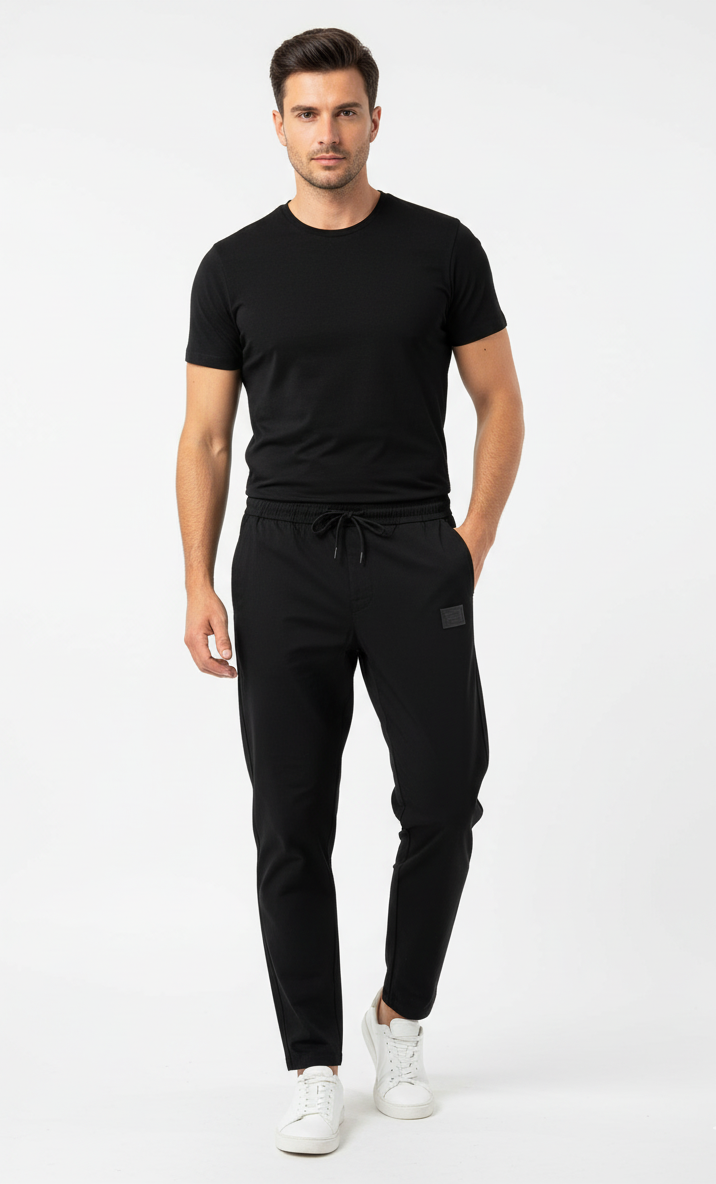BURBERRY MENS BLACK PATCH PRINT TROUSER
