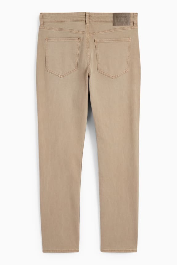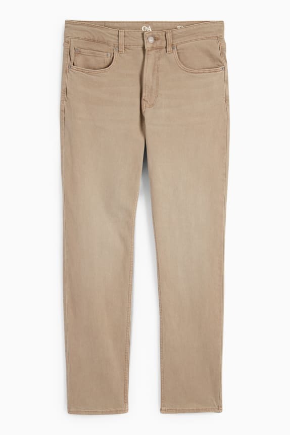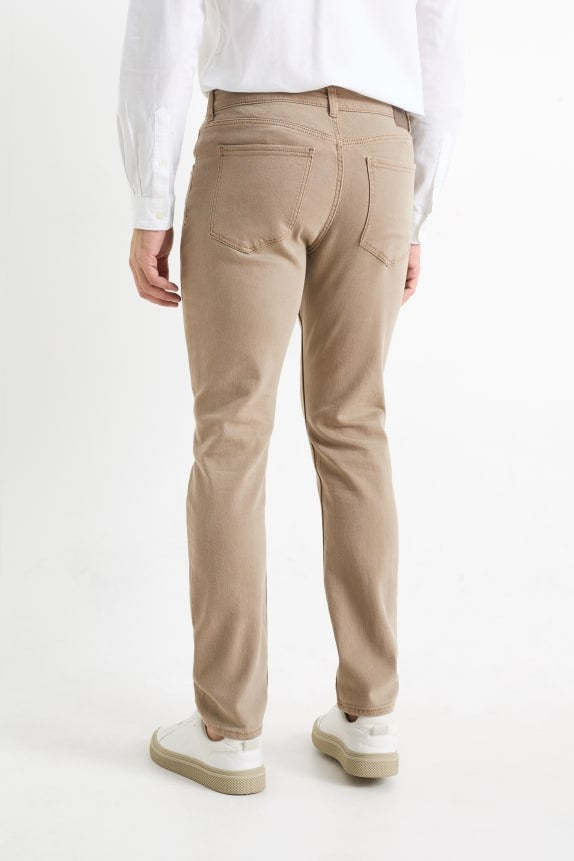 Slim fit jeans in stretch denim. Whiskering and garment-washed effects.