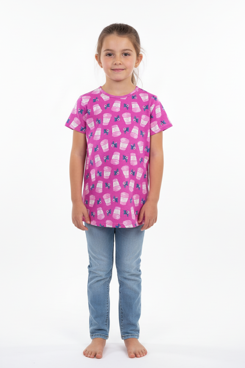 All OVER COFEE MUG PRINT T-SHIRT. T-shirt in soft, cotton with round neck line, short sleeves featuring front print details. The T-Shirt is appropriate similar occasions, for gifting or personal use.