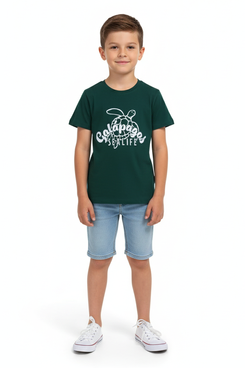 Celebrate the magic of marine life with our Green “Galápagos Sealife” T-shirt for kids. This ocean-inspired tee features a cheerful white outline of a sea turtle alongside bold Galápagos Sealife text — perfect for your little explorer with a love for nature and the sea.