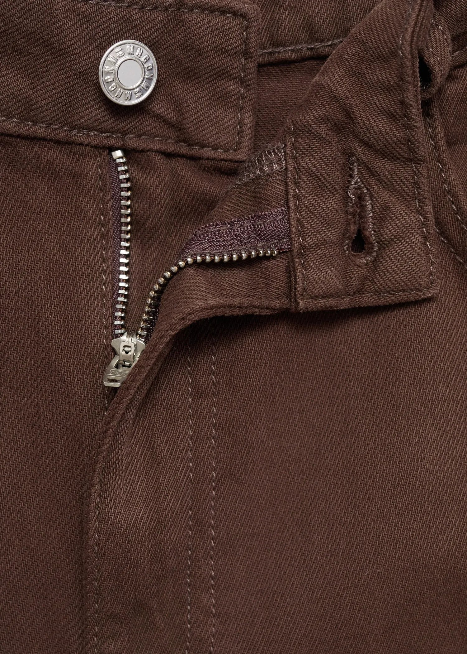 Denim-style cotton fabric. Long design. Wide-leg design. High waist. Belt loops. Five pockets. Zip and button fastening.