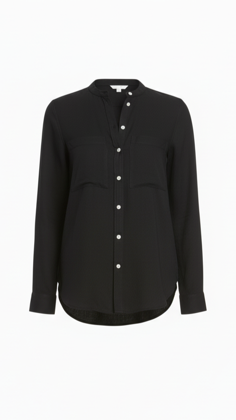 GINATRICOT WOMENS BLACK LINEN DOUBLE POCKET SHIRT