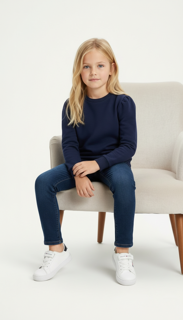 GIRLS Basic Navy Blue Sweatshirt Get your little one shining bright with this sweatshirt. This sweatshirt brings both comfort and style. Made with soft, stretchy...