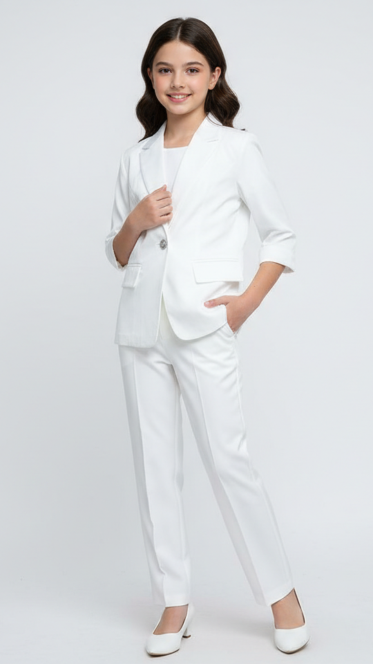 Girls Classic Textured Fancy White Blazer Elevate formal and semi-formal looks with this classic white blazer, designed for a polished and confident appearance. Crafted with...