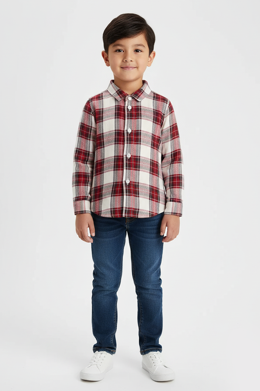 Shirt made of soft cotton muslin with a pattern. Kent collar, buttons down the front and cuffs with a snap.