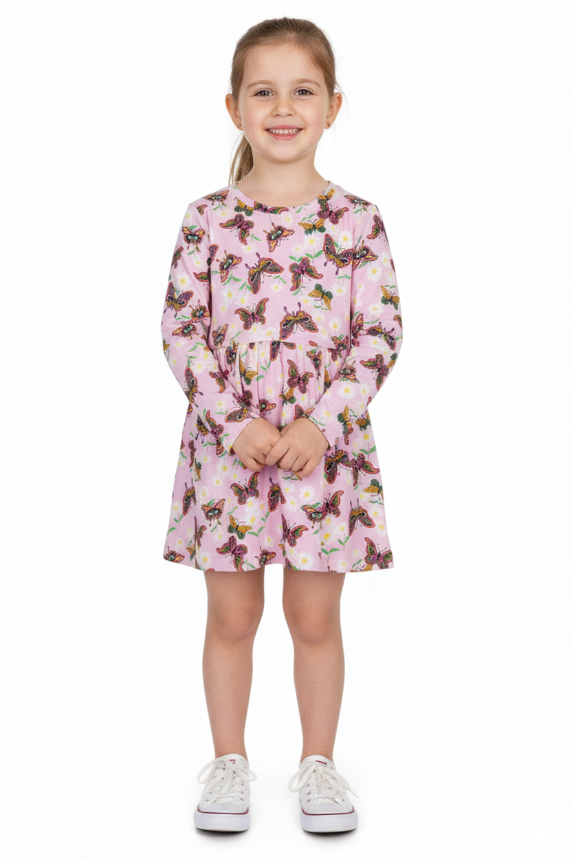GIRLS MULTICOLOUR BUTTERFLIES AND SUNFLOWER PRINTED DRESS