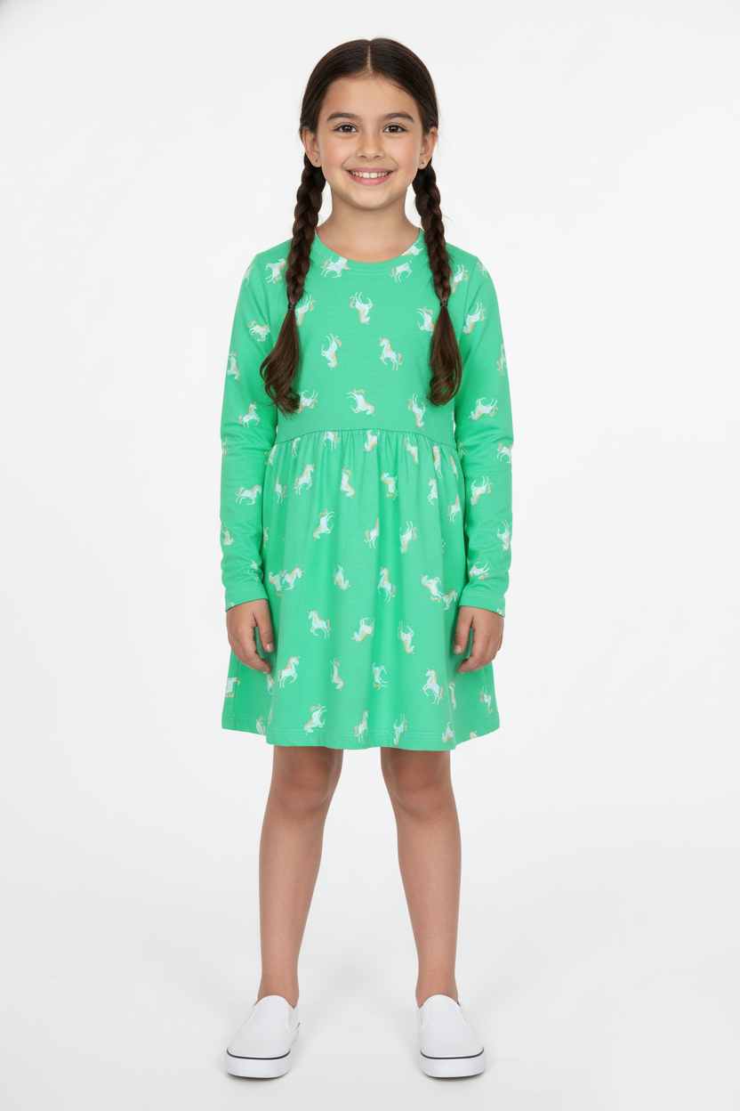 GIRLS UNICORN PRINTED FULL SLEEVED DRESS