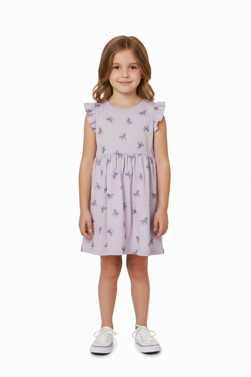 Enhance your wardrobe with the GIRL Jersey Dress, featuring a unique unicorn glitter print and a stylish sando design.