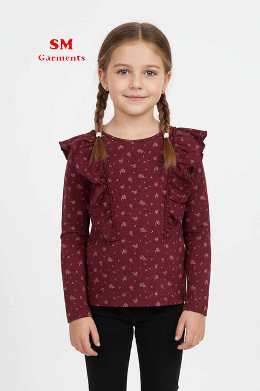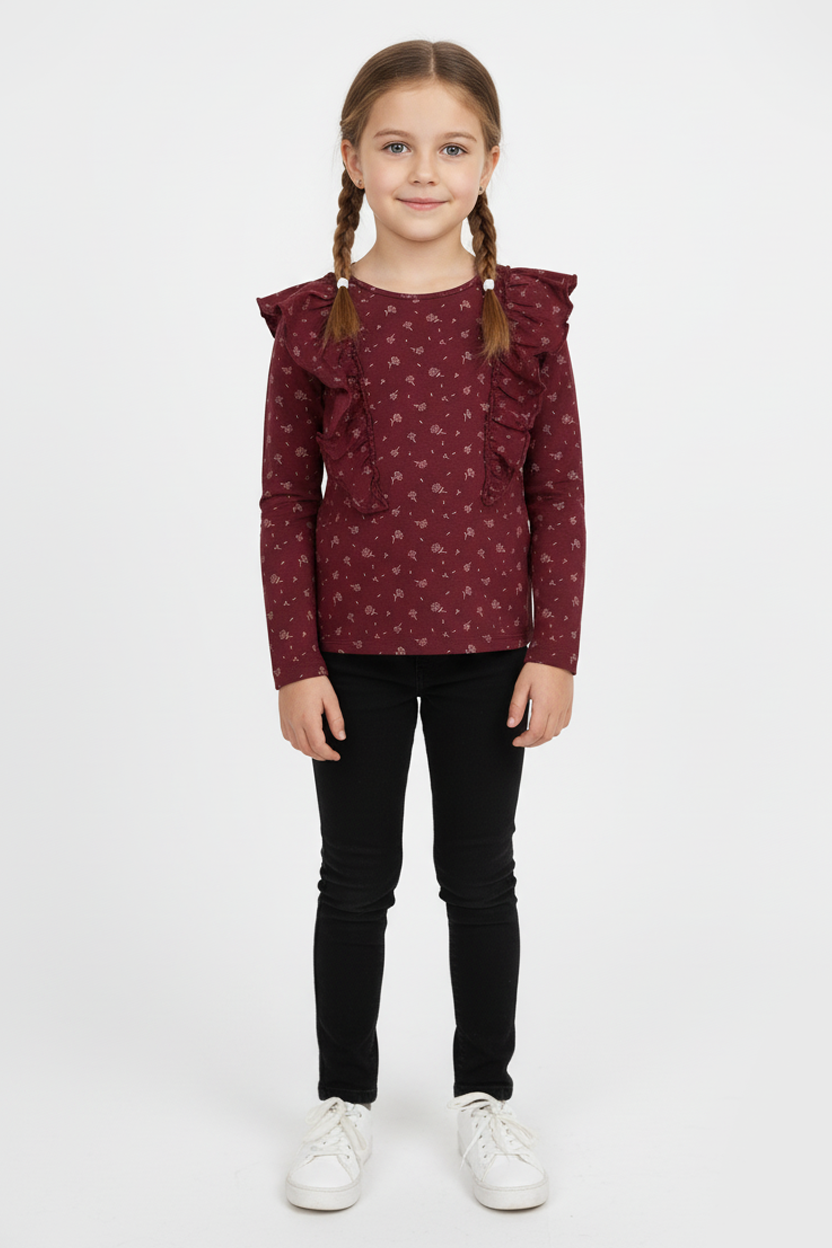 T-shirt in soft cotton jersey with long sleeves and ruffles at the front that continue on the shoulders and back.