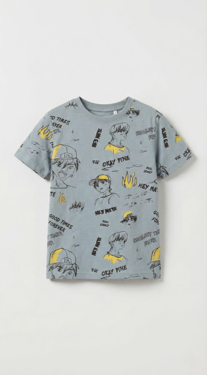 Crafted from soft, breathable fabric, this short-sleeve t-shirt ensures all-day comfort for active kids. The classic crew neck and relaxed fit make it perfect for casual wear, whether he's heading to school, playing with friends, or simply relaxing at home. Easy to pair with jeans, shorts, or joggers, this versatile top adds a cool and contemporary touch to any young boy's wardrobe.