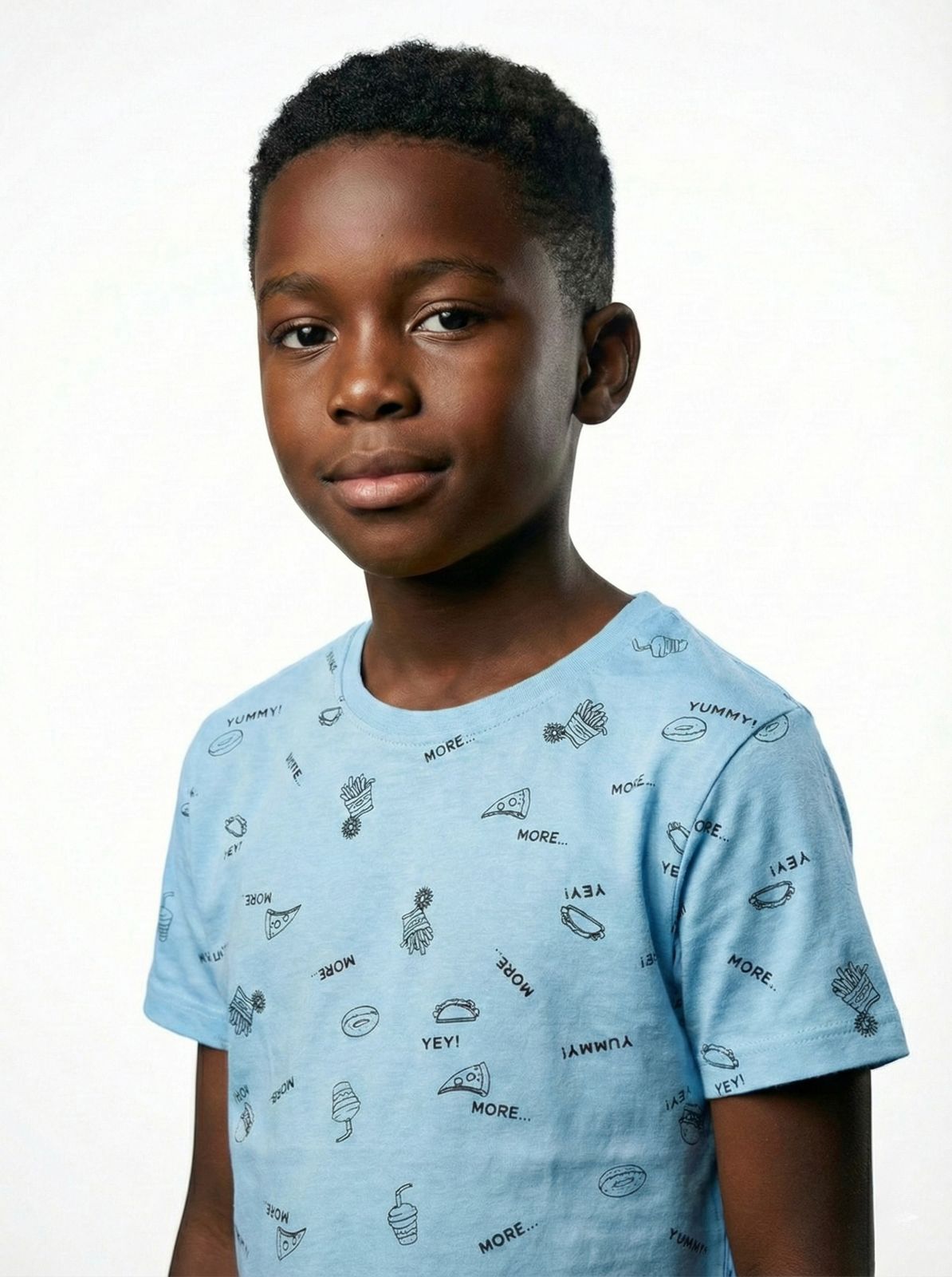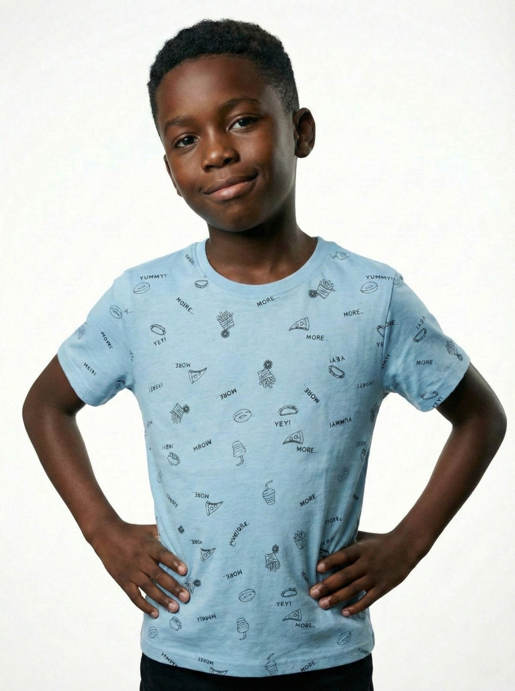 Upgrade your child’s casual wardrobe with this stylish Sky Blue Graphic Print T-Shirt, designed for comfort and everyday versatility. Crafted from premium-quality cotton fabric, this tee offers a soft touch against the skin while ensuring maximum breathability for all-day wear.