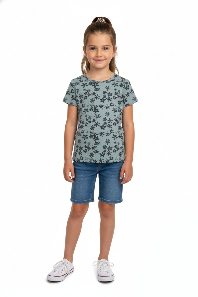 Add a splash of floral flair to your everyday wardrobe with our Floral Print Crew Neck T-Shirt. Made from a soft and breathable fabric, this tee features a charming all-over black floral pattern on a muted teal background. Perfect for casual outings, layering, or lounging in style.