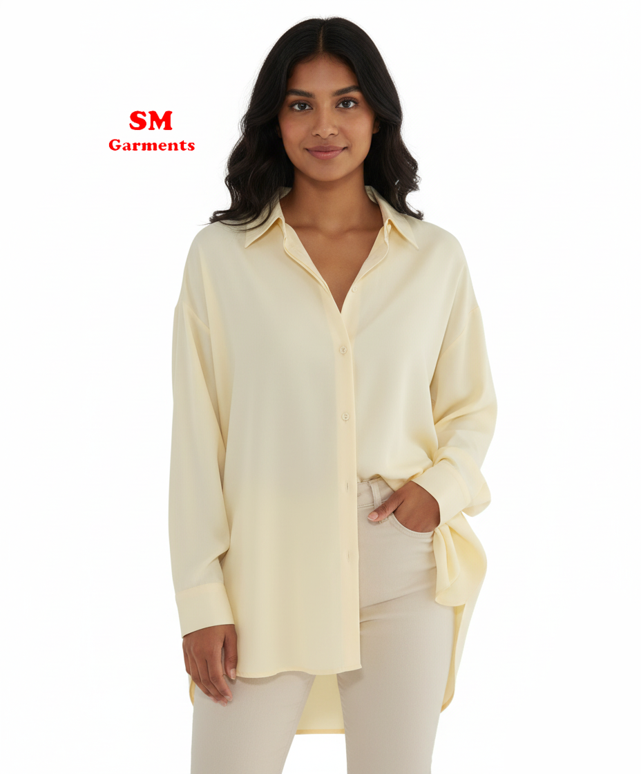 Women's Casual Collar Long Sleeve Shirt -Relaxed Fit with Asymmetrical Hem, Button-Front Blouse for Spring Summer Fall, Versatile Casual to Semi-Formal Wear, Elegant Long Sleeve Button Blouses, Seasonal Fashion Top, Front Slit Design, Solid Color Top