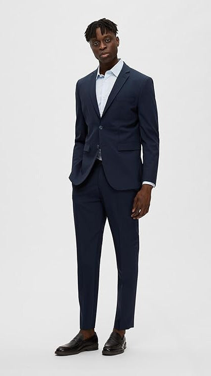 Elevate your formal and smart-casual attire with the SELECTED HOMME Men's Navy Formal Blazer. Meticulously crafted for the modern man, this blazer embodies sophisticated style and a contemporary silhouette.