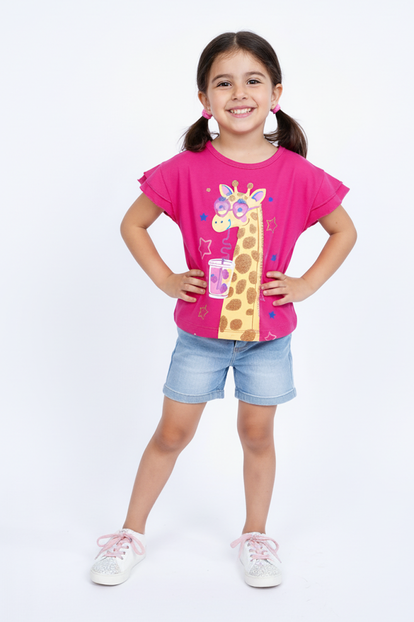 OBAIBI GIRLS GIRAFFE PRINTED TEES - Smgarment's