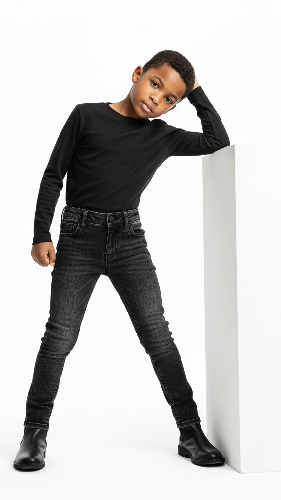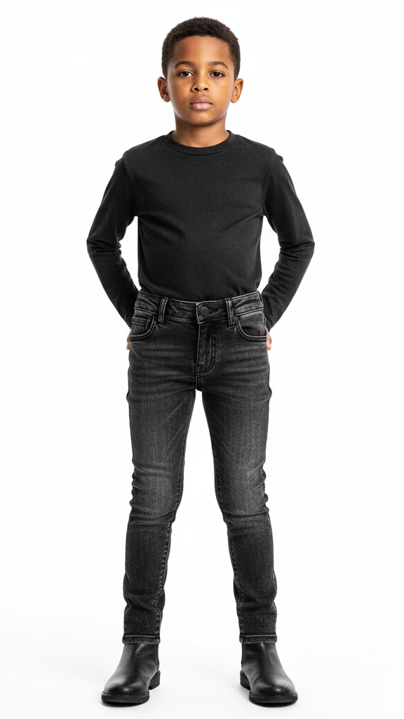 KIABI BOYS BLACK WASH JEANS Relaxed design jeans made of cotton fabric. button and zip fastening classic...