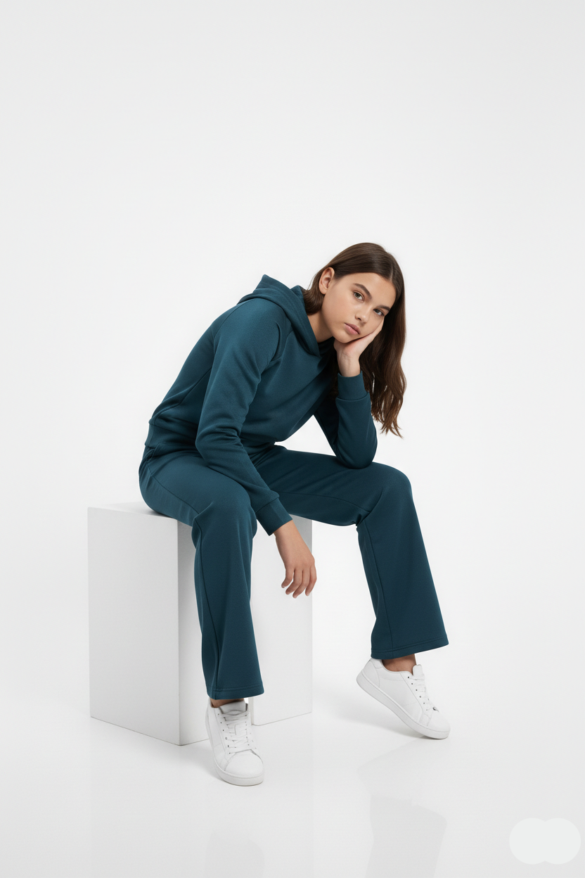 Two-piece set. with long sleeves. Ribbed details with an elastic waistband and drawstrings.