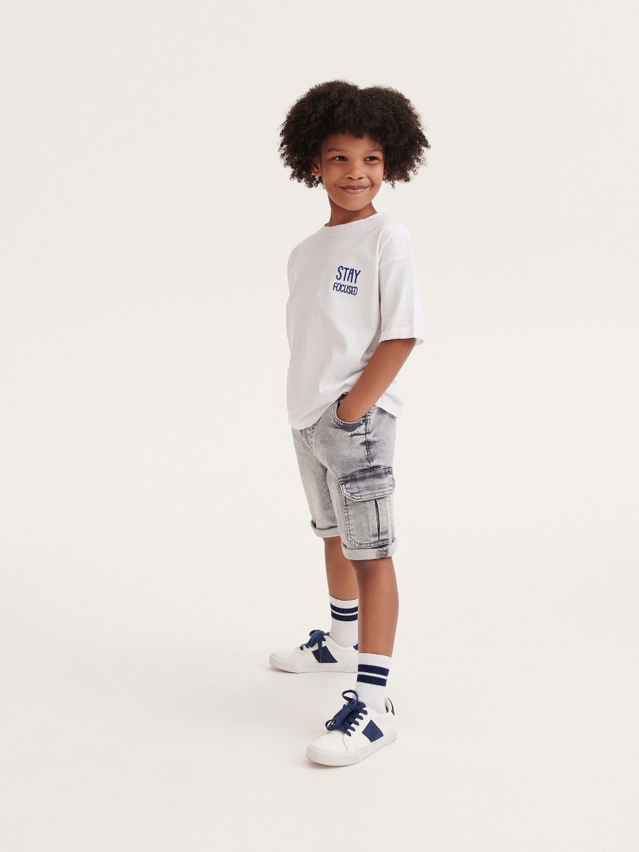 Straight-cut denim shorts made of cotton fabric.