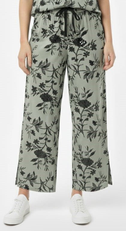 This effortlessly chic two-piece ensemble redefines comfortable style. Crafted for ease and elegance, the set features a coordinating short-sleeve top and trousers in a striking floral pattern accented with subtle, delicate sequin detailing.