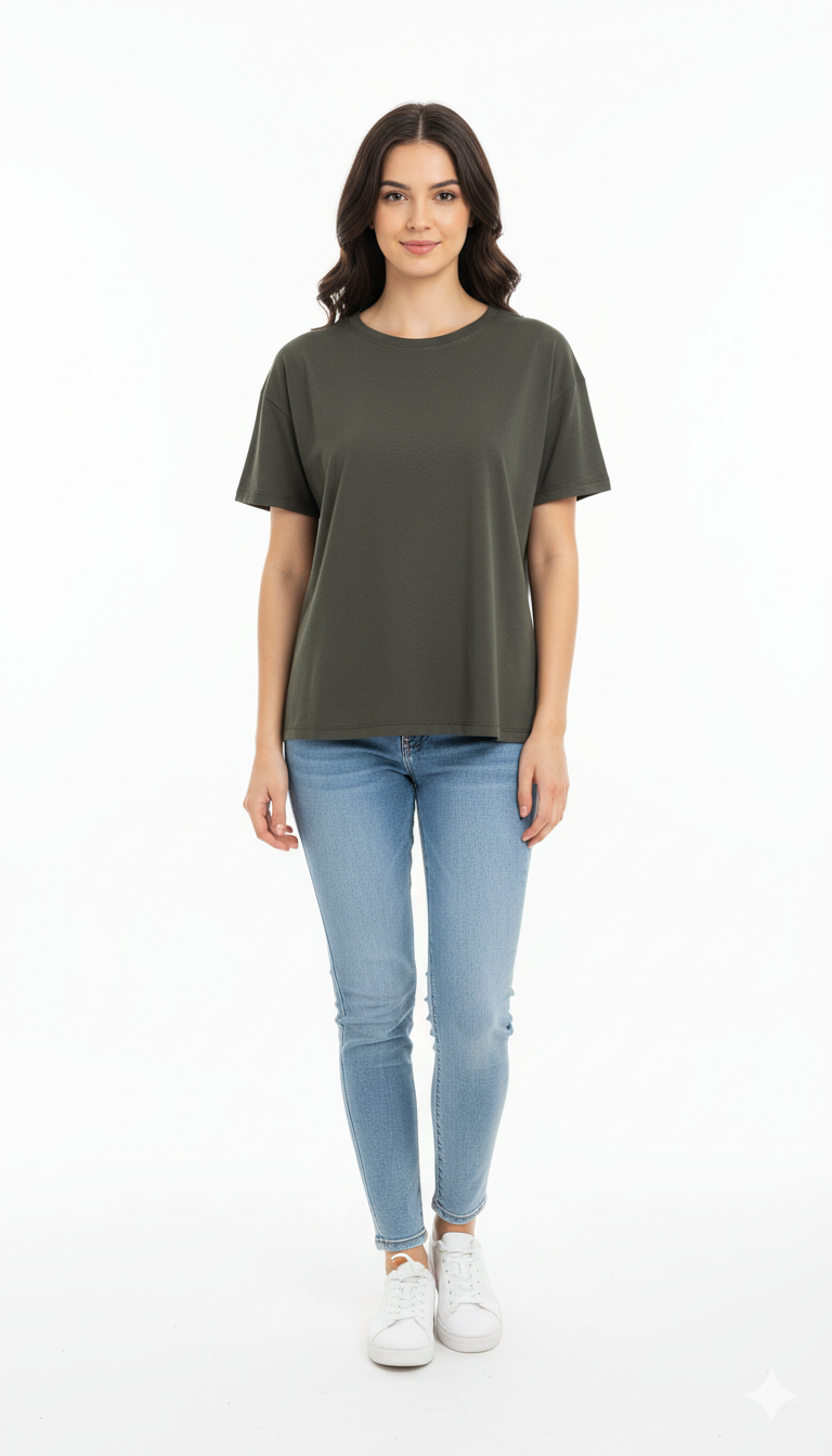 SPF WOMEN BASIC CREW NECK DARK GREEN T SHIRT
