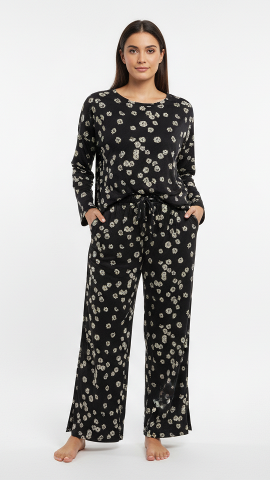 FLORAL PRINTED FULL SLEEVES T SHIRT AND PAJAMAS SUIT WITH FANCY CUTS