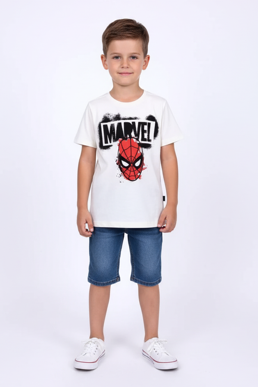 Spider Man T-shirt with sustainable cotton front and back spider man print . Ribbed neck.