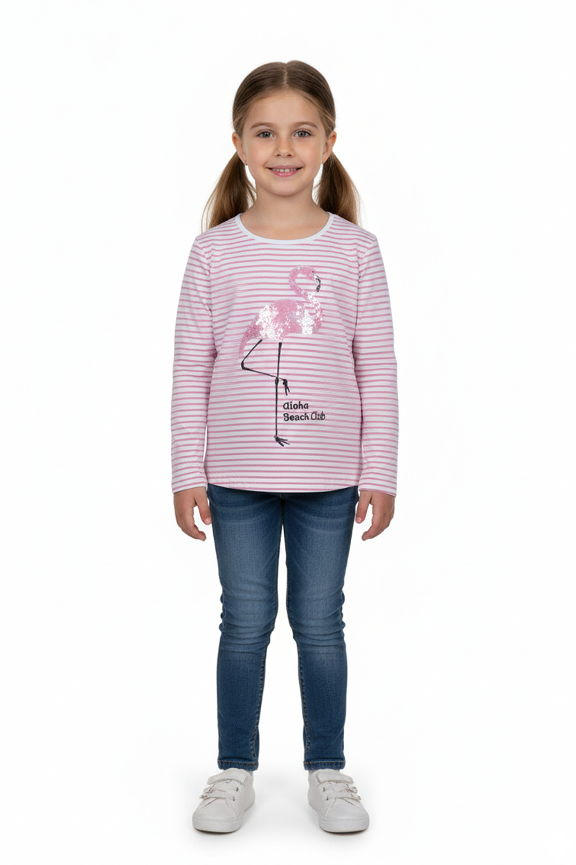 Bring the beach vibes home with this adorable striped long sleeve t-shirt from TEX, featuring a sparkly sequin flamingo and the phrase "Aloha Beach Club". Made with soft cotton, it offers comfort, charm, and a splash of fun for everyday wear.