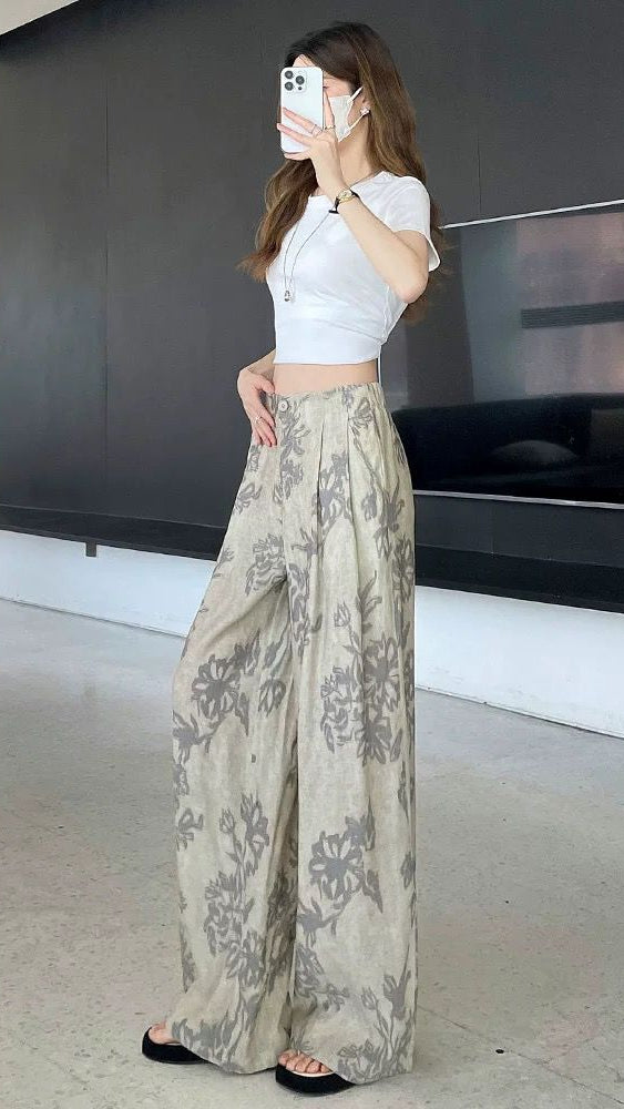 XIAONAI Womens High Waist Floral Wide Leg Trousers Upgrade your everyday wardrobe with these elegant high-waist wide-leg trousers, designed for effortless comfort and modern style....