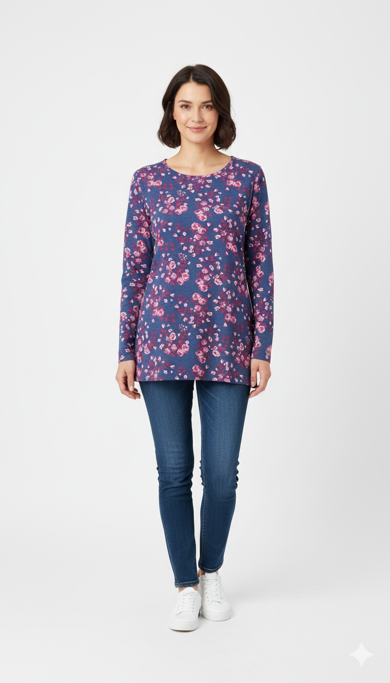 WOMEN'S FULL SLEEVE FLORAL T-SHIRT CARE  MACHINE WASH  DO NOT BLEACH TUMBLE DRY LOW  LOW IRON IF...