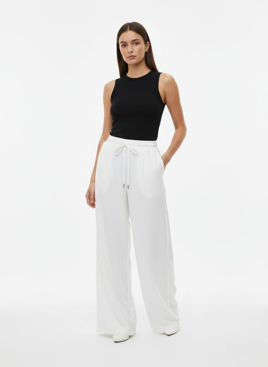 Women's high-waisted wide-leg trousers (polyster) These pants offer a relaxed, baggy, or flowy silhouette that is wide...