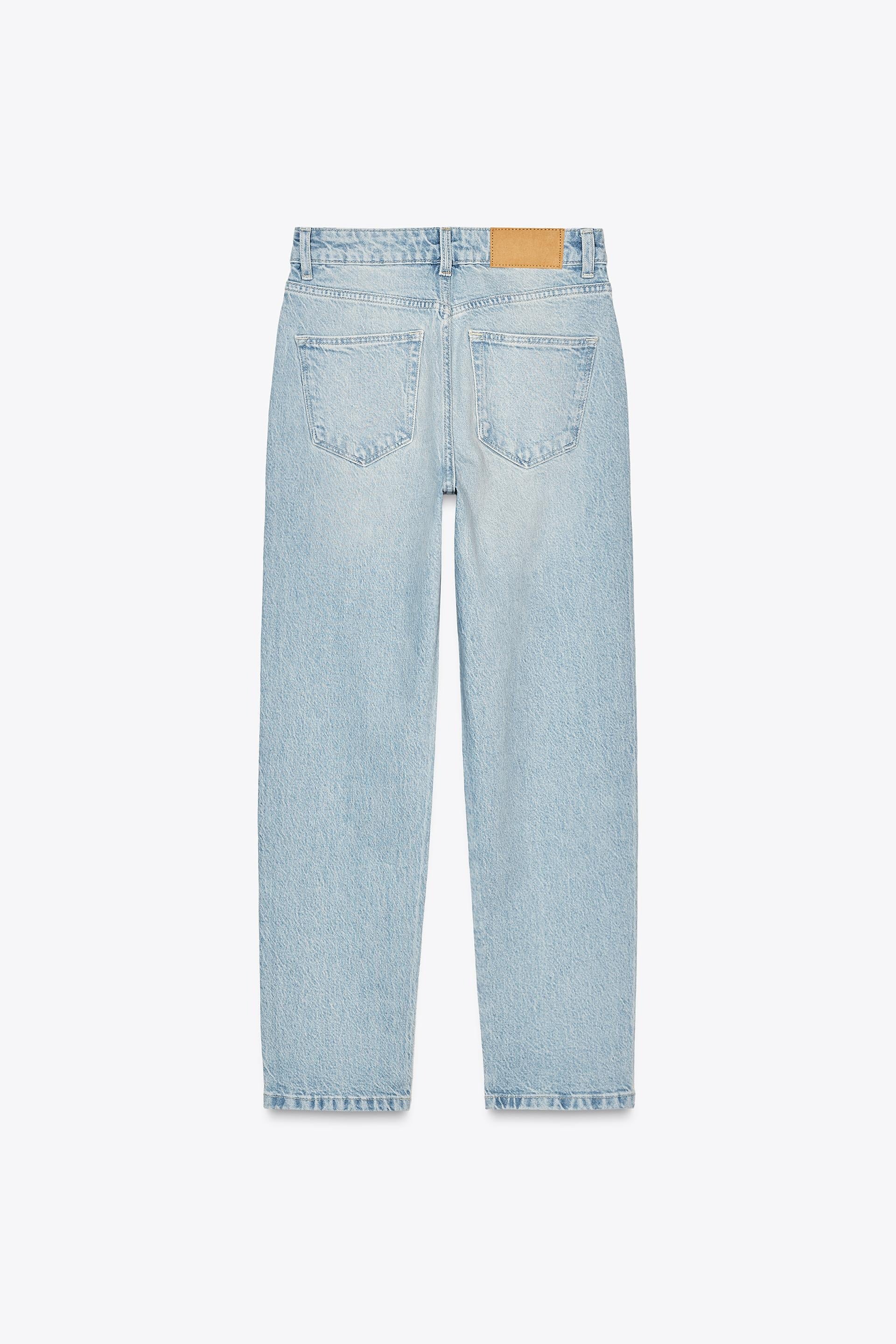 High-waist jeans with five pockets. Zip fly and button fastening.