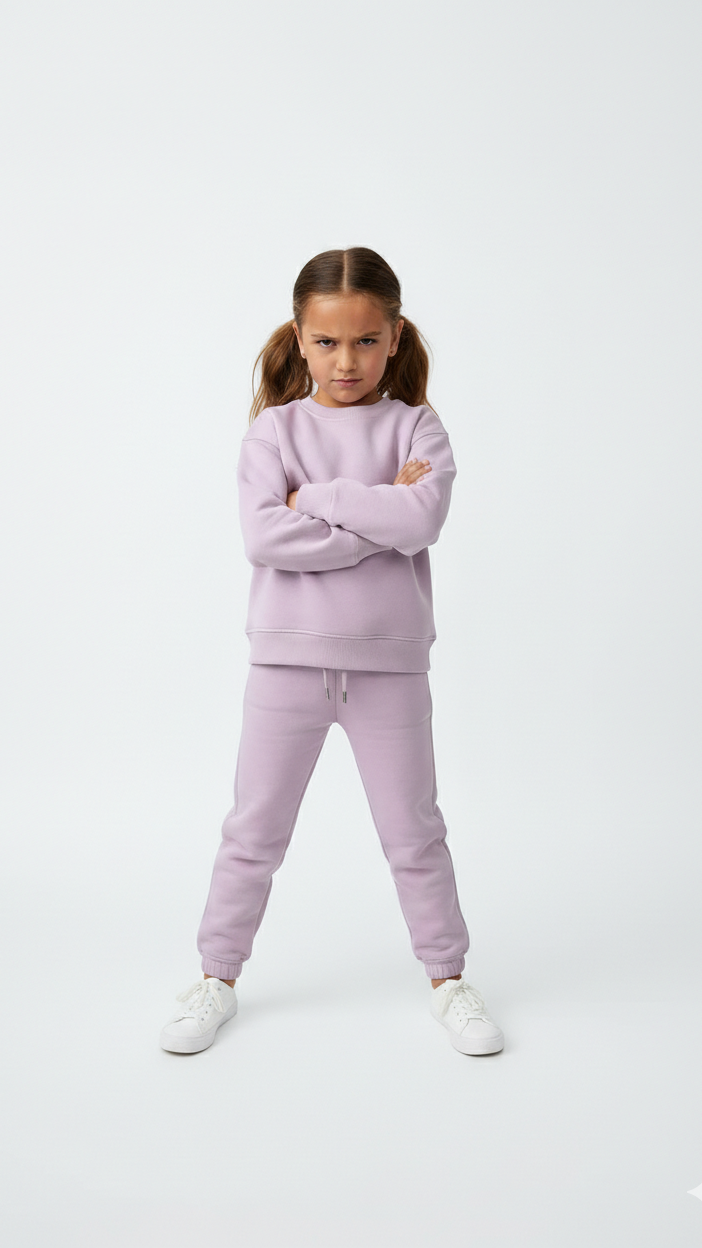 Two-piece set. Crew-neck sweatshirt with long sleeves. Ribbed details.