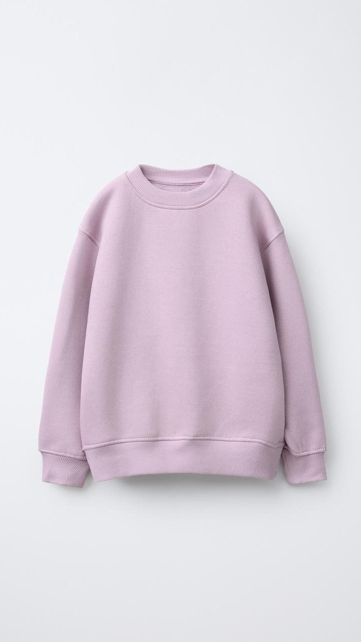 Plain sweatshirt with a round neck and long sleeves. Ribbed trims. Soft, warm brushed inside. Fabric with 62% cotton. 38% polyester
