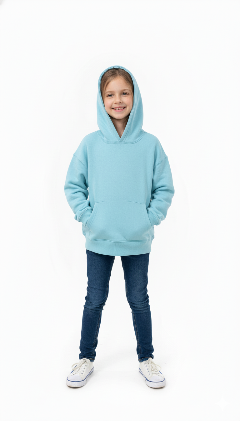 Long sleeve hoodie with ribbed trims and a front pouch pocket.