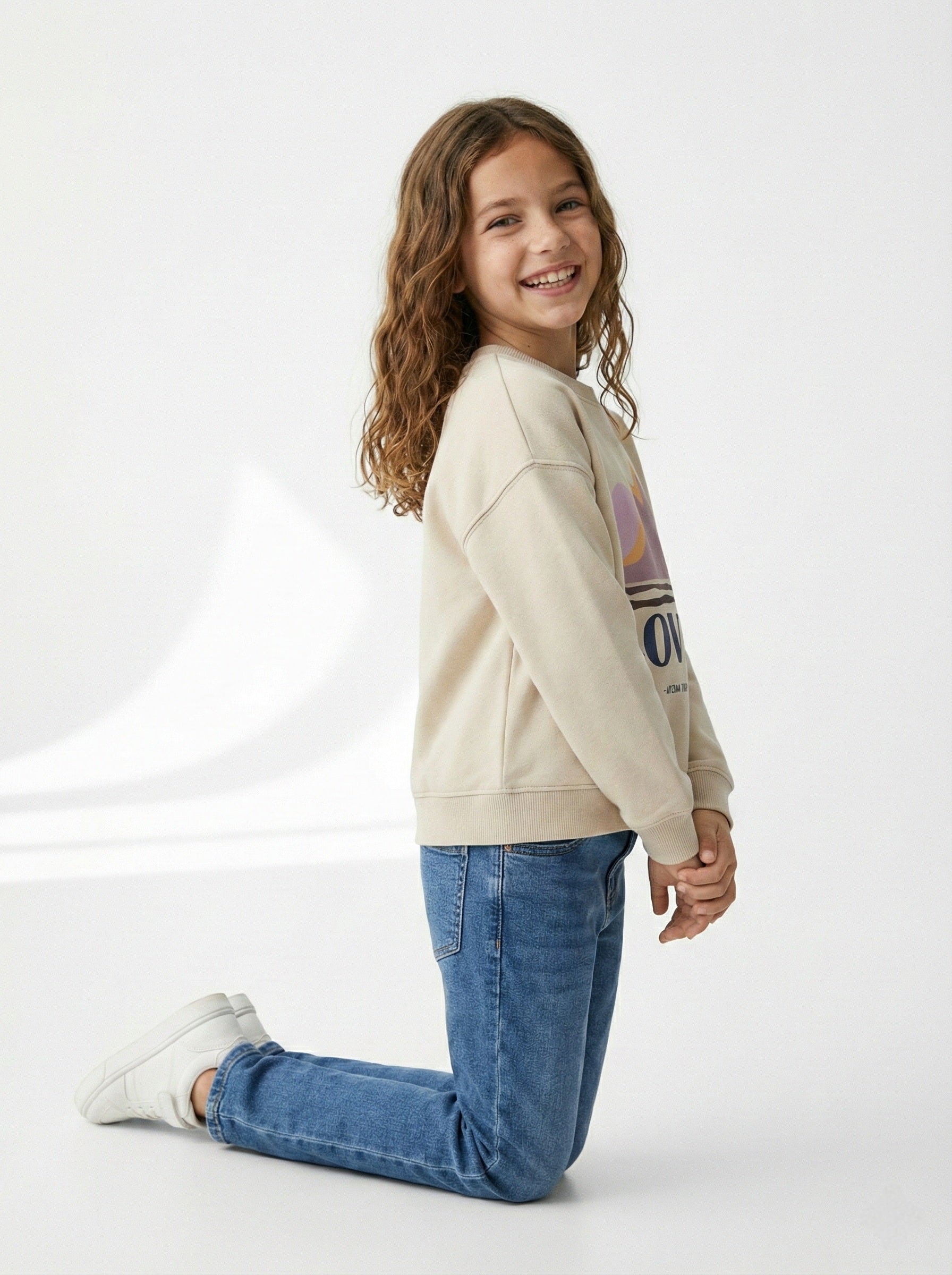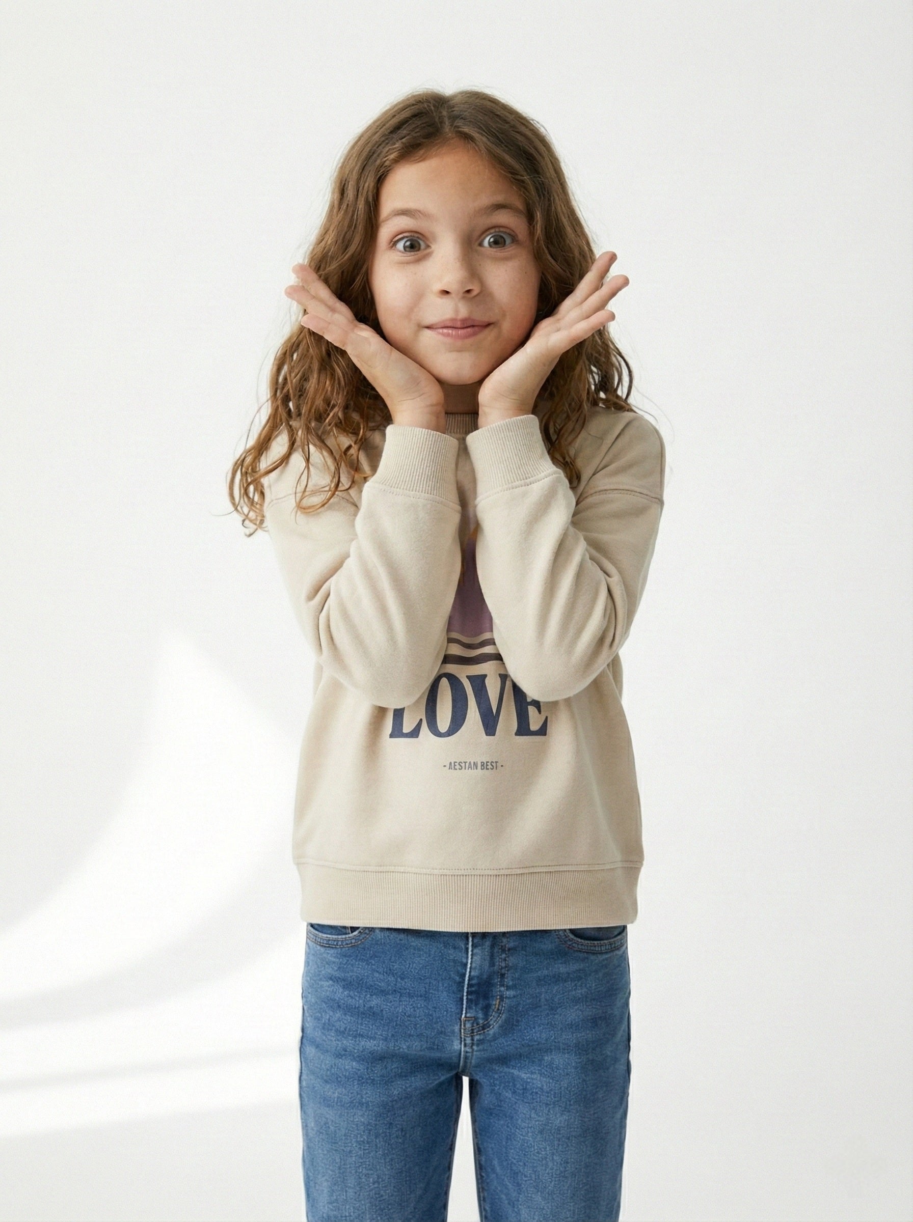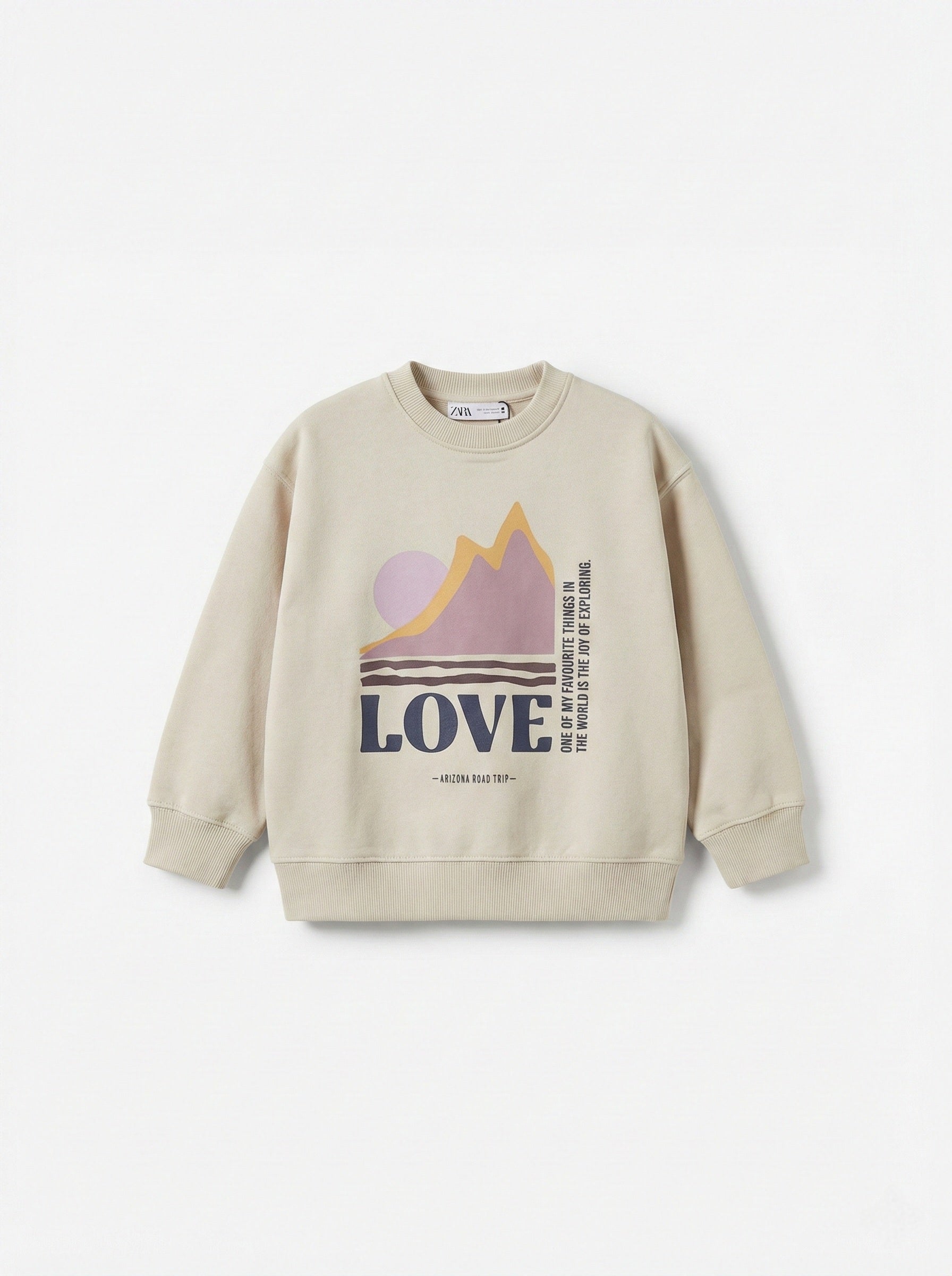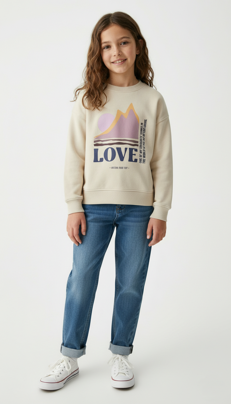Sweatshirt with a round neck and long sleeves. Ribbed trims. Soft brushed inside. Made with 50% cotton 50% polyester