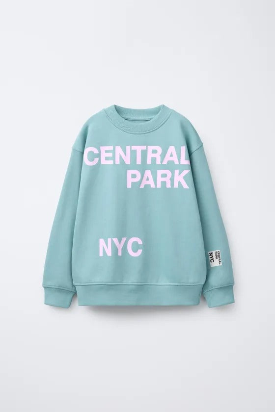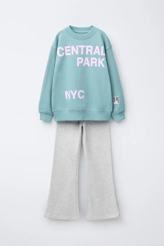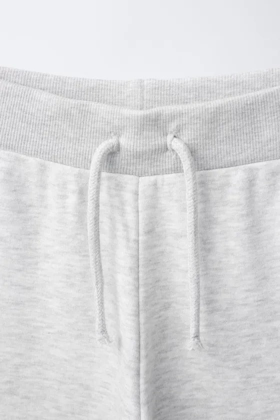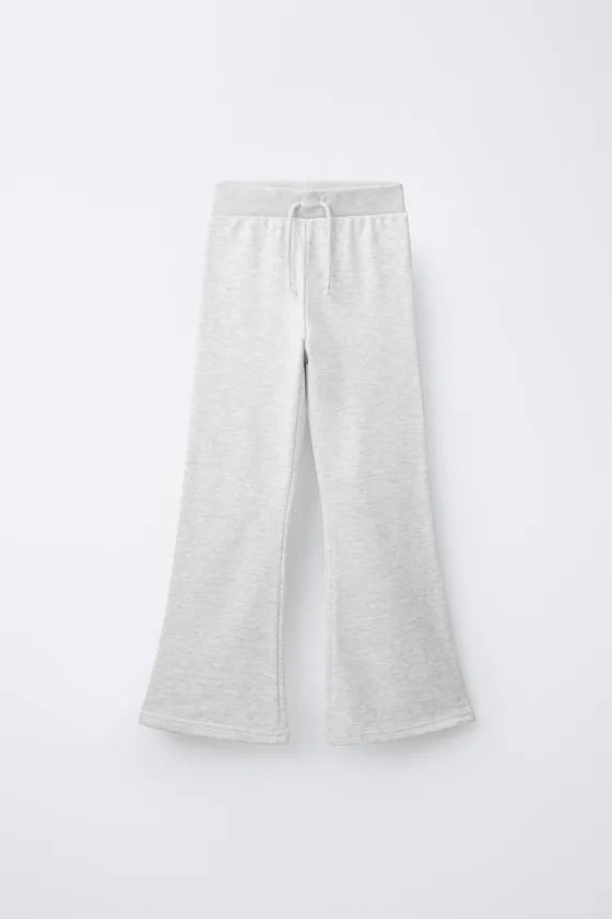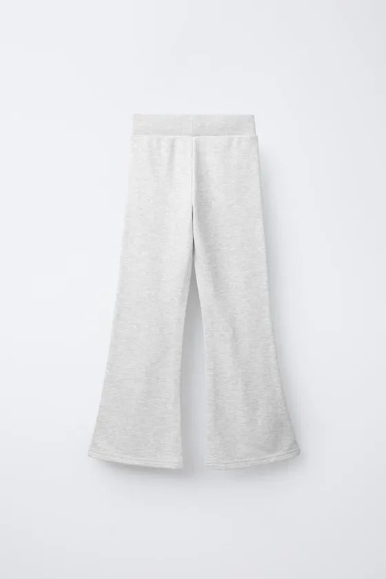 Two-piece set. Crew-neck sweatshirt with long sleeves. Ribbed details. Lettering on the front. Flared leggings with an elastic waistband and drawstrings.