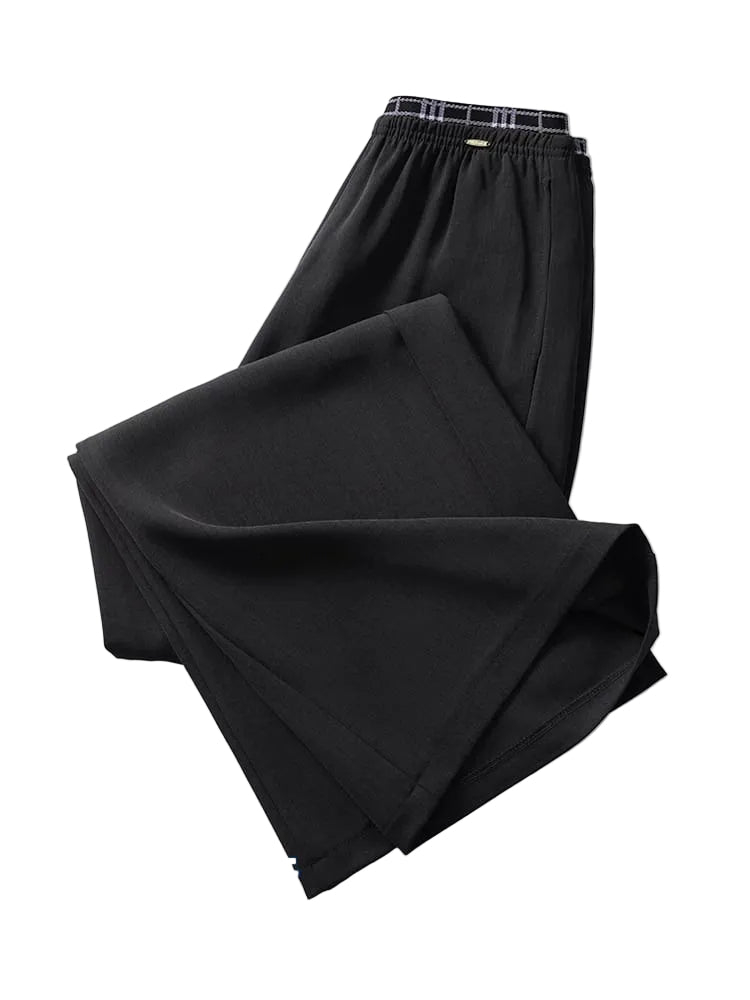 Crafted from a soft, breathable fabric in a versatile black, these trousers are perfect for a variety of occasions, from casual outings to more relaxed professional settings. The flowing design allows for ease of movement, making them an ideal choice for all-day wear. Pair them with a fitted top for a balanced look or a loose blouse for an airy ensemble.