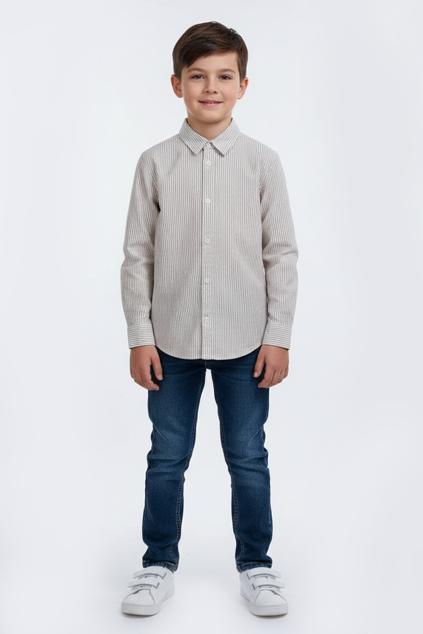 کالر کے ساتھ بنے ہوئے سوتی کپڑے میں قمیض، آگے بٹن اور پیچھے دو تہوں والا جوا۔ کف پر بٹنوں کے ساتھ لمبی بازو۔ آہستہ سے گول ہیم۔