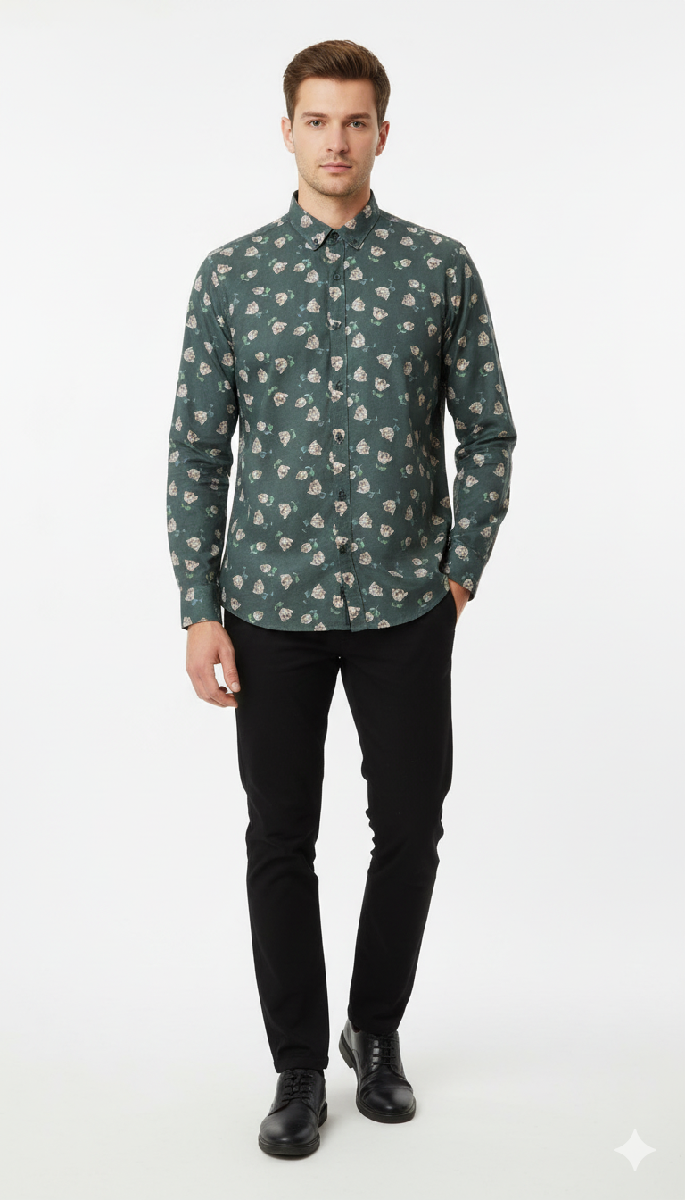 H&M مردوں کی پرنٹ شدہ شرٹ دیکھ بھال زیادہ سے زیادہ دھونے کا درجہ حرارت 30C بلیچ نہ کریں۔ نازک ٹمبل خشک کرنا درمیانی استری...
