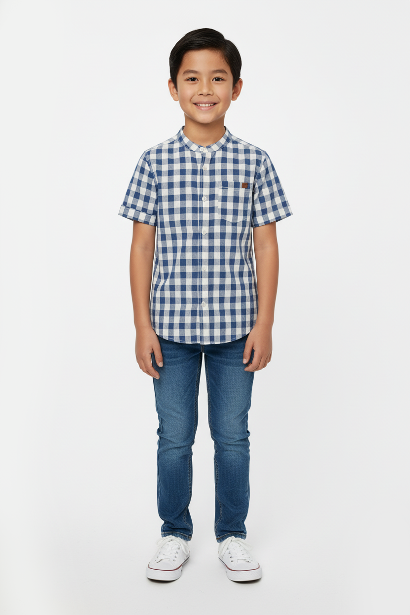 ہوا دار، بنے ہوئے کپڑے میں قمیض۔ بینڈ کالر، کلاسک بٹن پلیٹ، اور پیچھے جوا. کھلی سینے کی جیب اور سلے ہوئے فولڈ اوور کف کے ساتھ چھوٹی بازو۔ گول ہیم۔