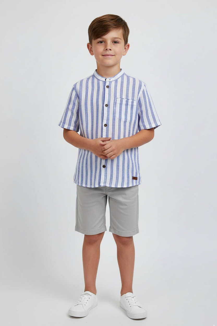 کالر کے ساتھ بنے ہوئے سوتی کپڑے میں قمیض، آگے بٹن اور پیچھے دو تہوں والا جوا۔ کف پر بٹنوں کے ساتھ لمبی بازو۔ آہستہ سے گول ہیم۔