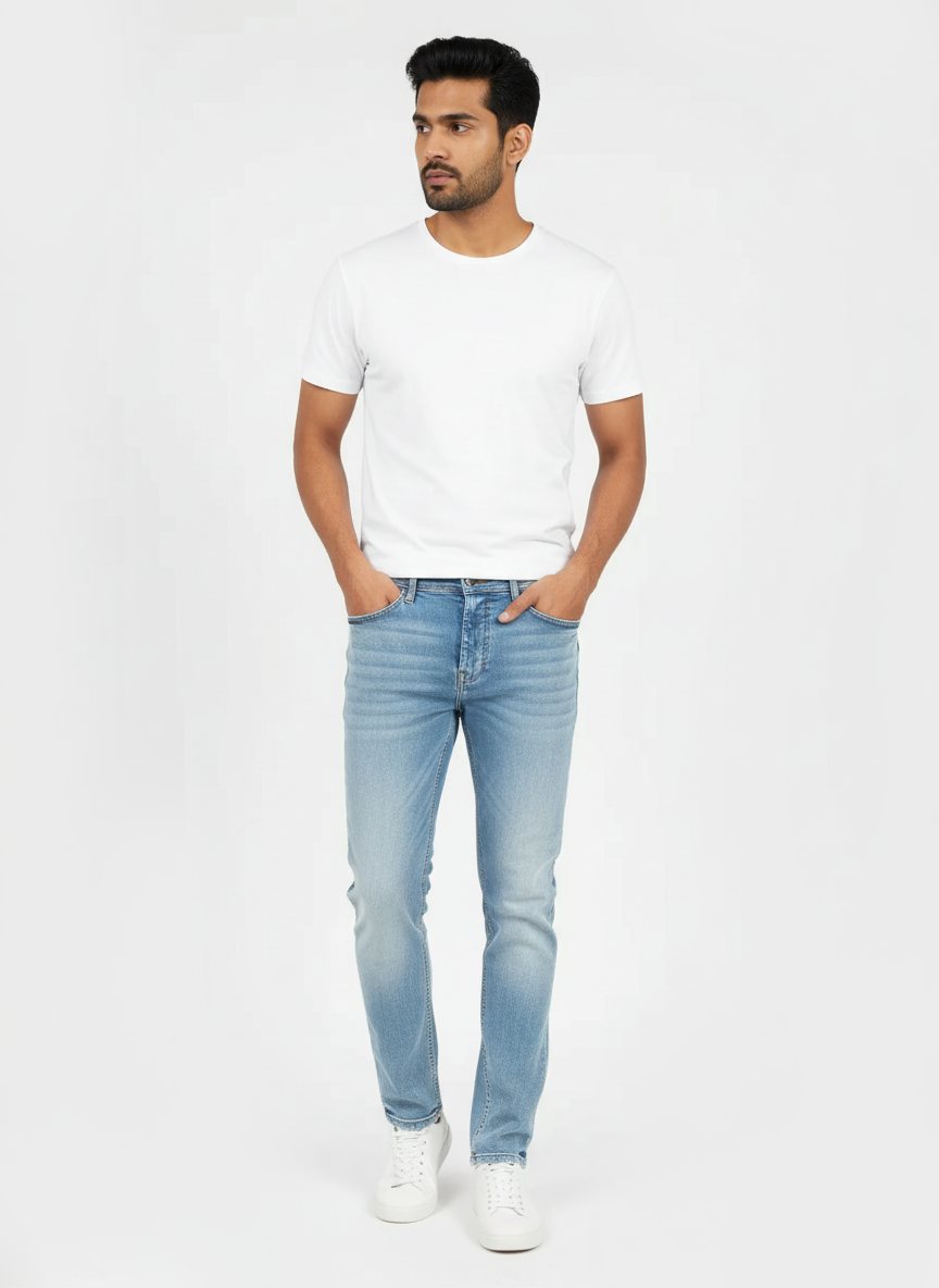 ٹیپرڈ ٹانگوں کے ساتھ مردوں کی پتلی فٹ جینز۔ وہ دھوئے ہوئے اثر کے ساتھ سوتی اور اسٹریچ فیبرک سے بنے ہیں۔ ان کے پاس کلاسک بٹن اور زپ بندھن، بیلٹ لوپس اور پانچ پرچی جیبیں ہیں۔ وہ سویٹ شرٹس، ٹی شرٹس اور شرٹس کے ساتھ روزمرہ کے بہت سے انداز کے لیے بہترین ہیں۔