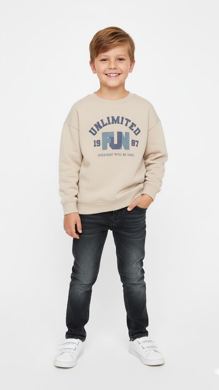 گول گردن اور لمبی آستینوں کے ساتھ پرنٹ شدہ سویٹ شرٹس۔ کالر، بازو اور کمر میں لچکدار پسلیوں والی تراشیں ہیں۔