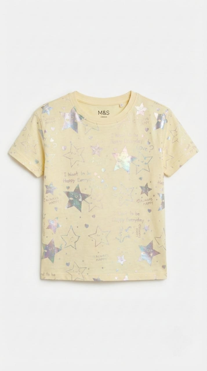 M&S Girls Happy Everyday Iridescent Star Print T Shirt