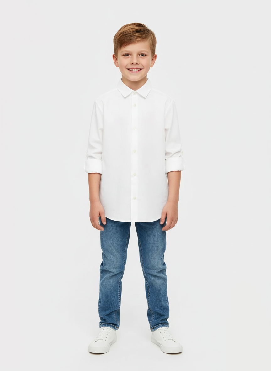 کاٹن پاپلن۔ سیدھا ڈیزائن۔ قمیض کی طرز کا کالر۔ لمبی بازو۔ بٹنوں کے ساتھ سامنے کی بندش۔ تقریب کا مجموعہ۔